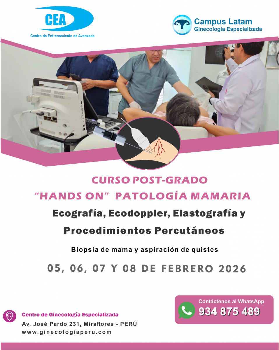 Cada año hay mayor incidencia de tumores de mamas, esto hace que los profesionales de la salud tengamos que reflexionar si estamos preparados para diagnosticar tempranamente y poder brindar a la paciente un tratamiento oportuno, por lo cual hemos desarrollado este curso con una temática orientada a brindar los conocimientos precisos en el diagnóstico de la patología mamaria, diagnóstico ecográfico, elelastografía y biopsia ecoguiada.